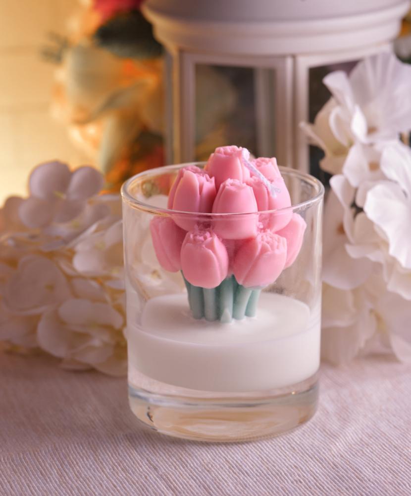 باقة من زهور التوليب الوردي محمولة داخل كأس زجاجي أنيق، وكأنها هدية صباحية مغلفة بالشمع والدفء. تصميم مثالي يدمج بين الرقة والبهجة، وتفاصيل تعكس ذوقًا راقيًا في كل زاوية.